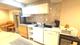 a) Kitchen, dining/living area, and a large bedroom with plenty of daylight in all locations.