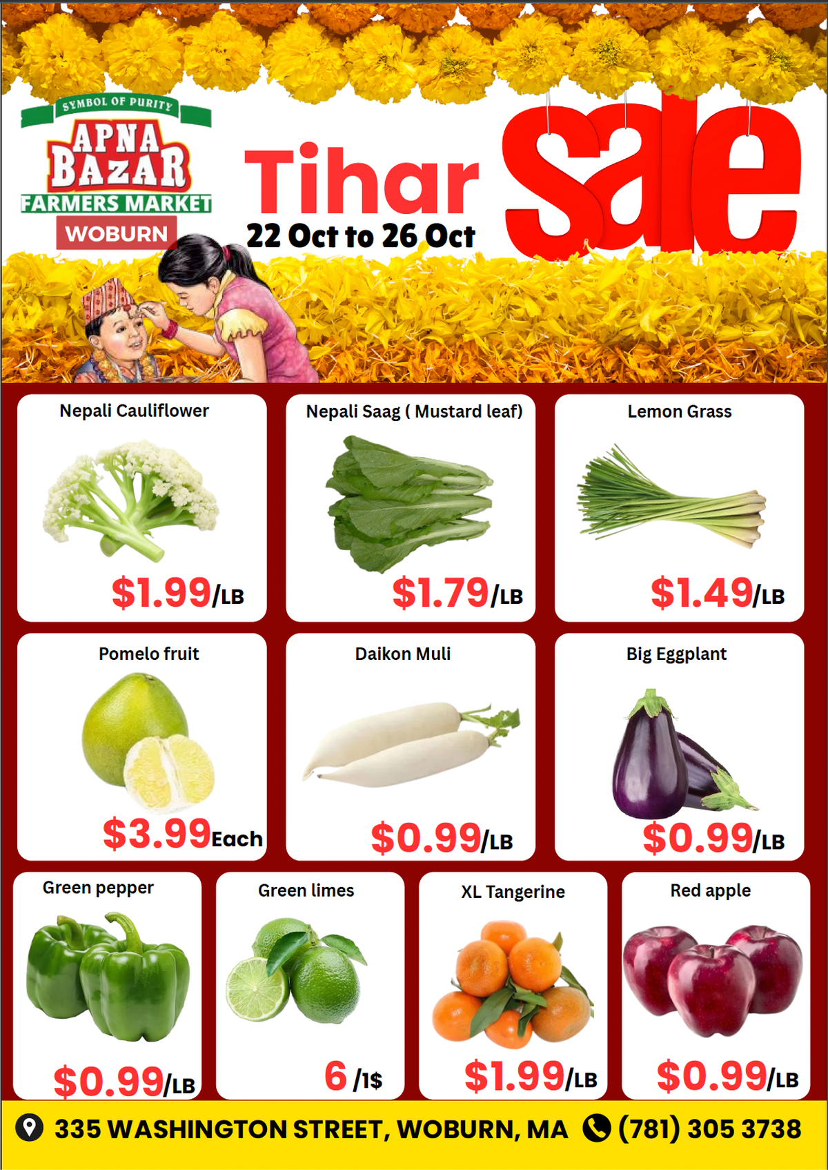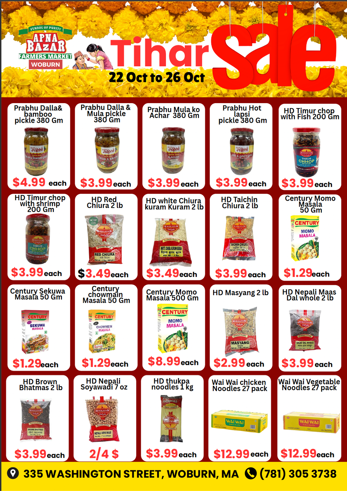 Itβs that special time of the year when lights shine bright, homes are filled with laughter, and the aroma of festive treats fills the air! πΌ Apna Bazar Woburn brings you everything you need to celebrate Tihar the Nepali way β from fresh produce, sweets, puja essentials, diyas, and dry fruits to your favorite snacks and decorations β all under one roof.
