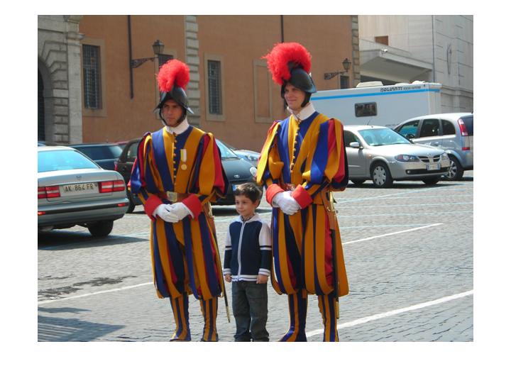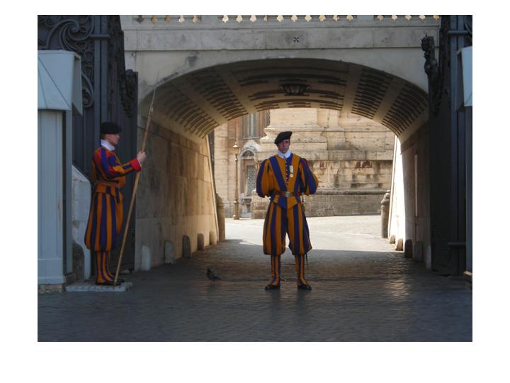 We guard the Vatican and the Pope but do you know, we are not Italians! We and all our other collegues guarding 'the Mecca of Catholics' are Swiss!