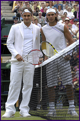 Haven't noticed that ........But man, 8 straight grand slam finals..has anyone come close to doing that. Surely worth more than gold! He indeed is poetry in motion (almost is like a cliche coming from me ) :). I do hope though Rafi pushes him to his extremeties. But i predict a straight set victory!!!