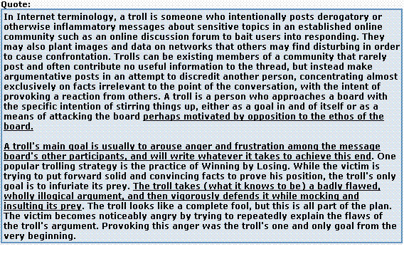 Hey Samsara ....i don't understand one thing? IF he is enticing you....it would not hurt you to keep quiet ...ignore him. Why u need to indulge in discussion... Don't you think troll thrives on you.