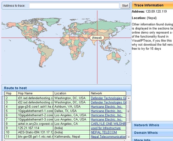 Results of IP Tracking for 120.89.120.119