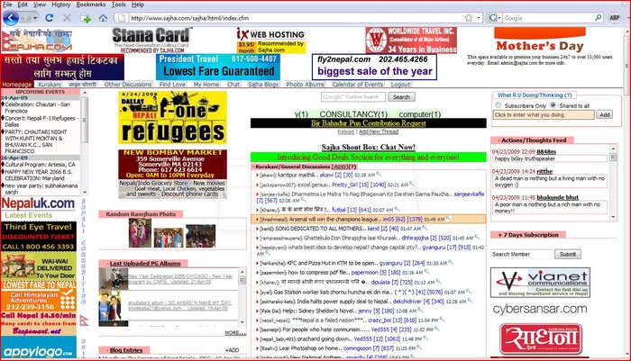 Beau, I appreciate your concern but I am not sure if the option of donation supported site will be viable. When there are so many more worthy causes that one can donate to, I am skeptic that people would want to donate to run a website. Perhaps a more viable method would be to make paid accounts where there are no ads yet a section for advertisements. How does this seem to you and how much will you be willing to pay lets say per month for this kind of ad free access? I have not put a lot of thought into it but just want to get some general feedback to see if there is some kind of consensus on this. Your picture of kathmandu street reminds me of my analogy of sajha resembling thamel street in this thread http://sajha.com/sajha/html/openthread.cfm?threadid=67343#664269Best wishes and happy Friday!