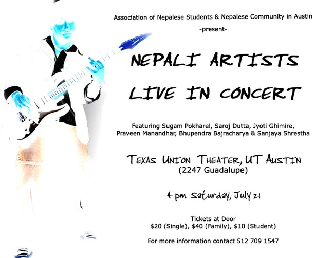 Nepali Musical Concert in Austin featuring Sanjaya Shrestha, Sugam Pokharel, Saroj Dutta, Jyoti Ghimire, Praveen Manandhar and Bhupendra Bajracharya