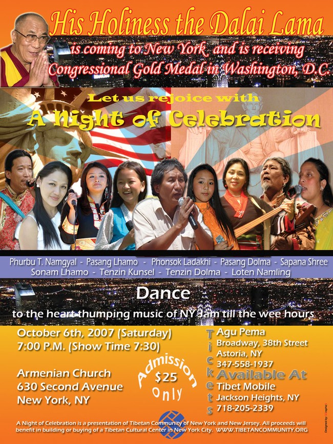 To celebrate these milestones, together, Tibetan Community of New York and New Jersey invites all Tibetans and friends of Tibetans to a concert featuring Tibetan performers and one special performer, all the way from India, Mr. Phonsok Laddakhi.