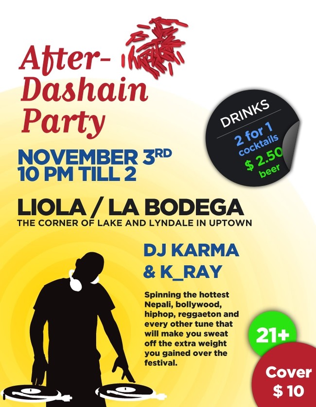 Please come and join us for Dashain and enjoy the banging beats of DJ Karma and K_Ray!!