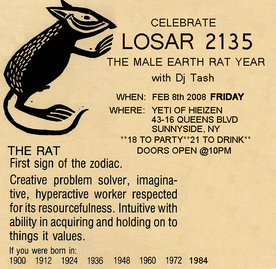 EARTH RAT YEAR" with Dj Tash. DUE TO SPACE AVAILABILITY, WE GOT LIMITED ENTRY AFTER MIDNIGHT SO PLZ COME EARLY AND NOT BE LEFT BEHIND. THANKS.