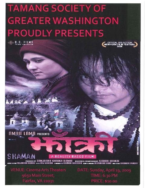 Tamang Society of Greater Washington is proud to present a reality based Nepal movie JHANKRI on Sunday, April 19th. This movie is produced by Amrit Lama (some of you might have met him during our Lhosar 2009 celebration). Although this movie has not been screened in Nepal, it has received many acclaim from those who have watched it in Europe and different parts of USA.