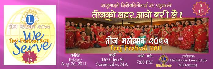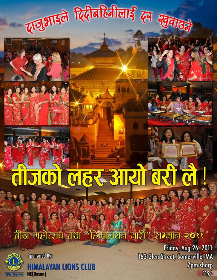 हाम्रा पहिचान र धरोहरका रूपमा रहेका हाम्रा सँस्कृति, हाम्रा चाडपर्व, हाम्रा परम्परा, हाम्रा पहिरन र पोशाकलाई यहाँको अमेरिकी समाजमा पनि पुर्याउने, देखाउने ,चिनाउने र फैलाउने अभियान लिएर गत वर्ष जस्तै यस वर्ष पनि हाम्रा नेपली चेलीहरूको यो विशिष्ठ लालित्य पर्वमा सहाभागी र सहयोगी भएको हिमालयन लाइन्स क्बलले तीजको आयोजना गरेको कुरा सर्वविदितै छ । नेपाली नारीको साँस्कृतिक पहिचान उच्च बनाउने यस अभियानमा सहभागी हुन हामी सबै नेपाली चेलीबेटीलाई हार्दिक अनुरोध र अपील गर्दछौं ।