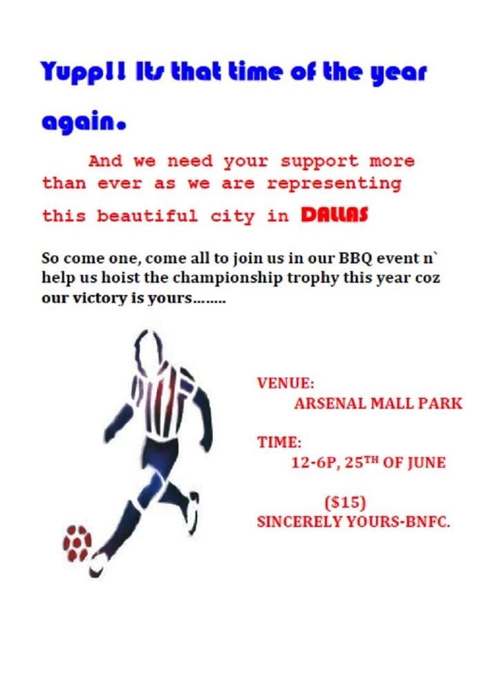 Hello everybody living in da Boston area or wherever in planet earth!! the Boston Nepali football Club (BNFC) is organizing a Barbeque event and calling upon all our supporters and soccer fans to join us and support us to compete in this upcoming ANA in Dallas. We have really worked hard n trained in between our daily life schedules so that we can give all our best to bring the trophy to this beautiful city. All our efforts will get an enormous boost if we could get support from our fellow Bostonians. So please come and join us to show your appreciation and give encouragements to the team which is on a mission to make us all proud.
