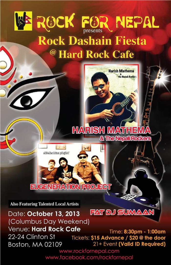 Rock this Dashain with the Legendary Singer "Harish Mathema & band, Boston's favorite "The Eugeneration Project", FatDJ Sumaan and other Boston's Nepali local bands !!!