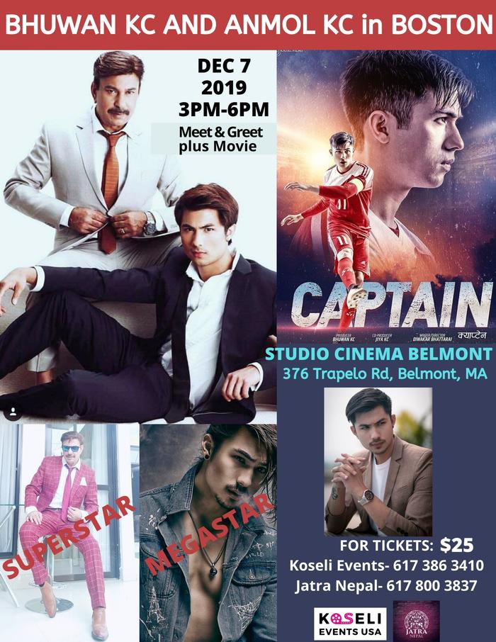 Hello BOSTON:: Meet and Greet The Superstar & The Megastar of KOLLYWOOD with Movie Screening of SuperHit Film 🎬CAPTAIN.... This Holiday. #BhuwanKC #AnmolKC #CAPTAIN #BostonPremiere A Nationalistic Movie featuring Sports as a tool to unite a NATION.
