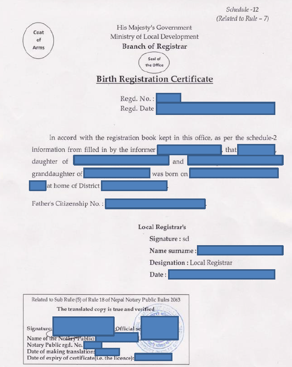 Will it be fine if we submit native (Nepali) copy of birth registration certificate along with english translated?