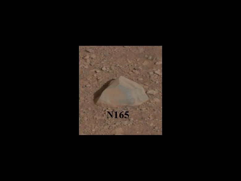 This close-up image shows the first target NASA's Curiosity rover aims to zap with its Chemistry and Camera (ChemCam) instrument. ChemCam will be firing a laser at this rock, provisionally named N165, and analyzing the glowing, ionized gas, called plasma, that the laser excites. The instrument will analyze that spark with a telescope and identify the chemical elements in the target.